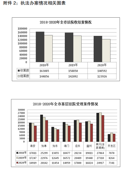 2020年是极不平凡的一年。全市法院坚持以习近平新时代中国特色社会主义思想为指导,认真贯彻落实市委、上级法院决策部署和市十五届人大四次会议精神,统筹抓好疫情防控和执法办案,扎实推进高质量司法,为“强富美高”新南通建设提供了有力保障。全市法院受理案件140592件,结案123926件,同比下降11.49%和12.78%,诉源治理效果进一步显现。市中院受理案件12236件,结案10662件,同比下降12.02%和10.98%。全市法官人均结案231.64件。最高人民法院周强院长视察南通时对法院工作给予充分肯定,特别指出南通智慧法院建设成效显著、发挥了“示范全国”效应。