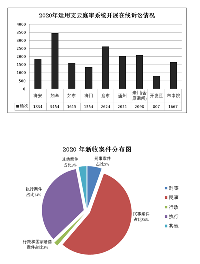 创新推进在线诉讼。大年初四(1月28日)即开始研发互联网庭审系统,2月10日支云庭审系统上线后,在全市安装88个审判法庭,有力确保审判执行工作“不停摆”。该系统嵌入中国移动微法院平台,远程保障最高法院在线开庭1066场次,被确定为援助湖北的三个信息化项目之一,获评全国“网上办事精品栏目”。创新建设8个驻看守所支云科技法庭,全国首创“看守所线下庭审 多地远程庭审 远程视频旁听”的刑事庭审方式。工作经验被省高院、省公安厅联合发文推广,并以我院制定的技术标准建设。发挥诉讼服务网、江苏微解纷、诉讼服务手机app等平台功能,网上立案48336件、跨域立案412件,运用支云庭审系统在线开庭、调解、听证17474场次,有力满足人民群众诉讼需求。
